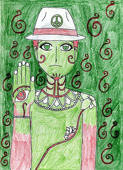 Psychedelic depiction of Lucas Grabeelas "Ryan Evans".